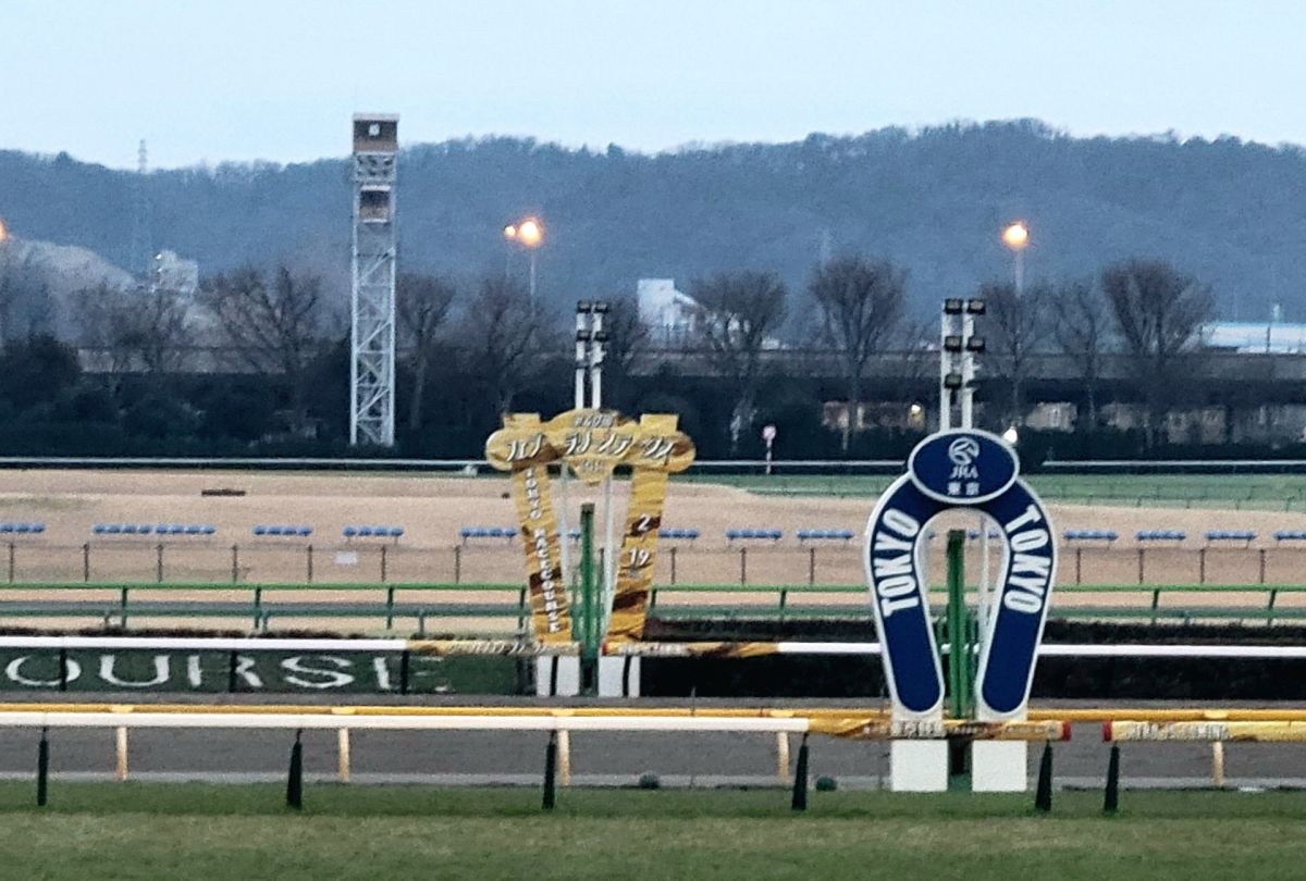 府中のダート1600メートルで行われるが、このコースはちょっとイレギュラーで、スタートは2コーナー奥の芝から。