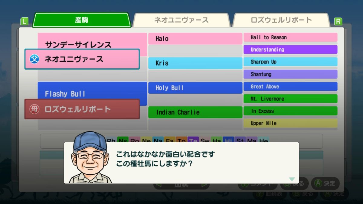マンハッタンカフェは種付料が高いし、しかも晩成型なので、初期の資金が行き詰まる可能性があるので、ひたすらネオユニヴァースを種付け。