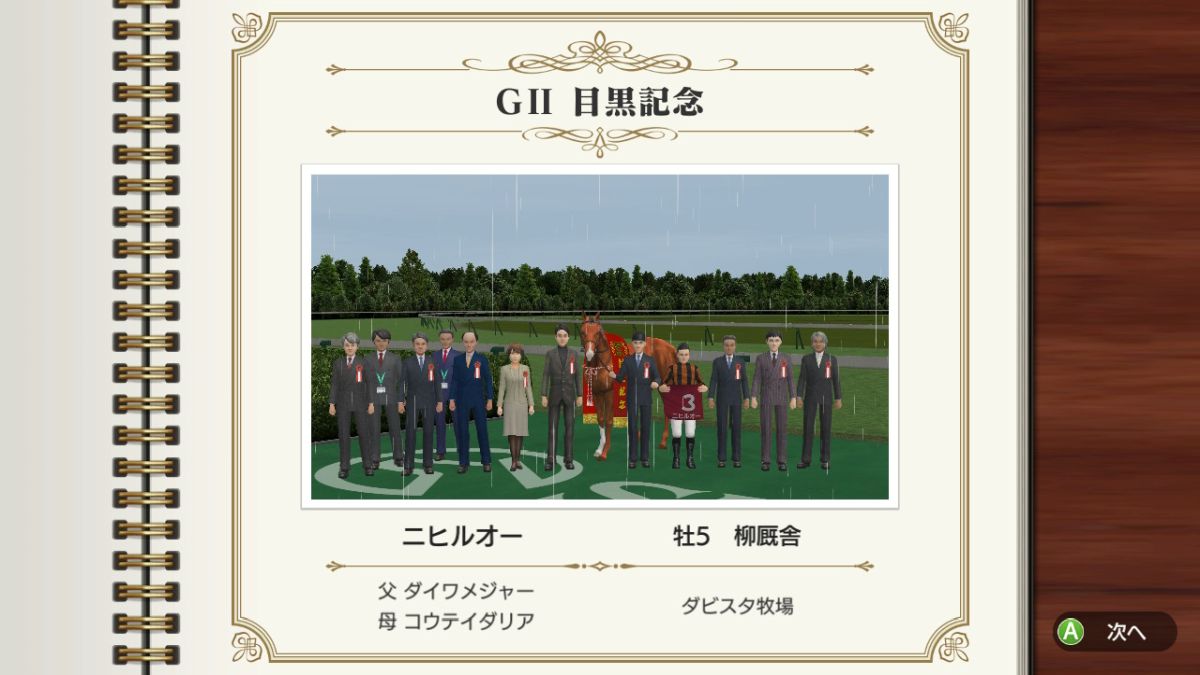 - 牡:48戦9勝、総賞金3億7120万円、重賞3勝(G2目黒記念、他)