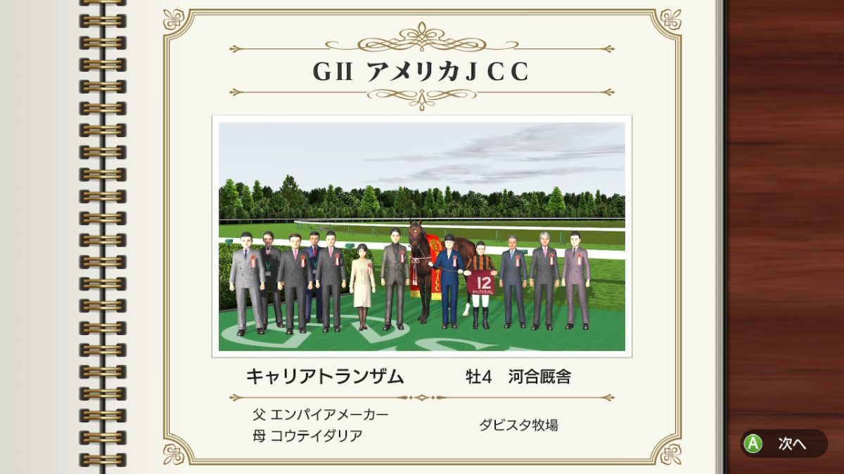 - 牡:28戦4勝、総賞金2億5690万円、重賞2勝(G2アメリカJCC、G3七夕賞)